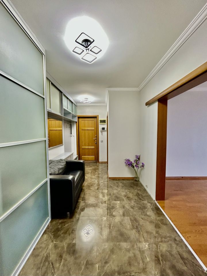 Продается просторная трехкомнатная квартира площадью 86,5 кв. м, расположенная на 20 этаже 23-этажного панельного дома. Высокий этаж гарантирует панорамные виды из окон, выходящих как на улицу, так и во двор. Дом был построен в 2005 году, находится рядом с метро Сколково, до которого можно дойти пешком всего за 16 минут.