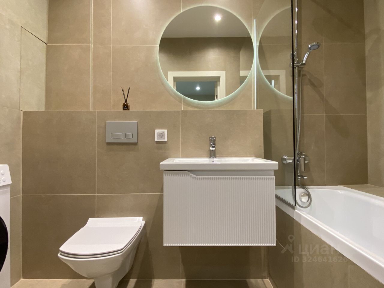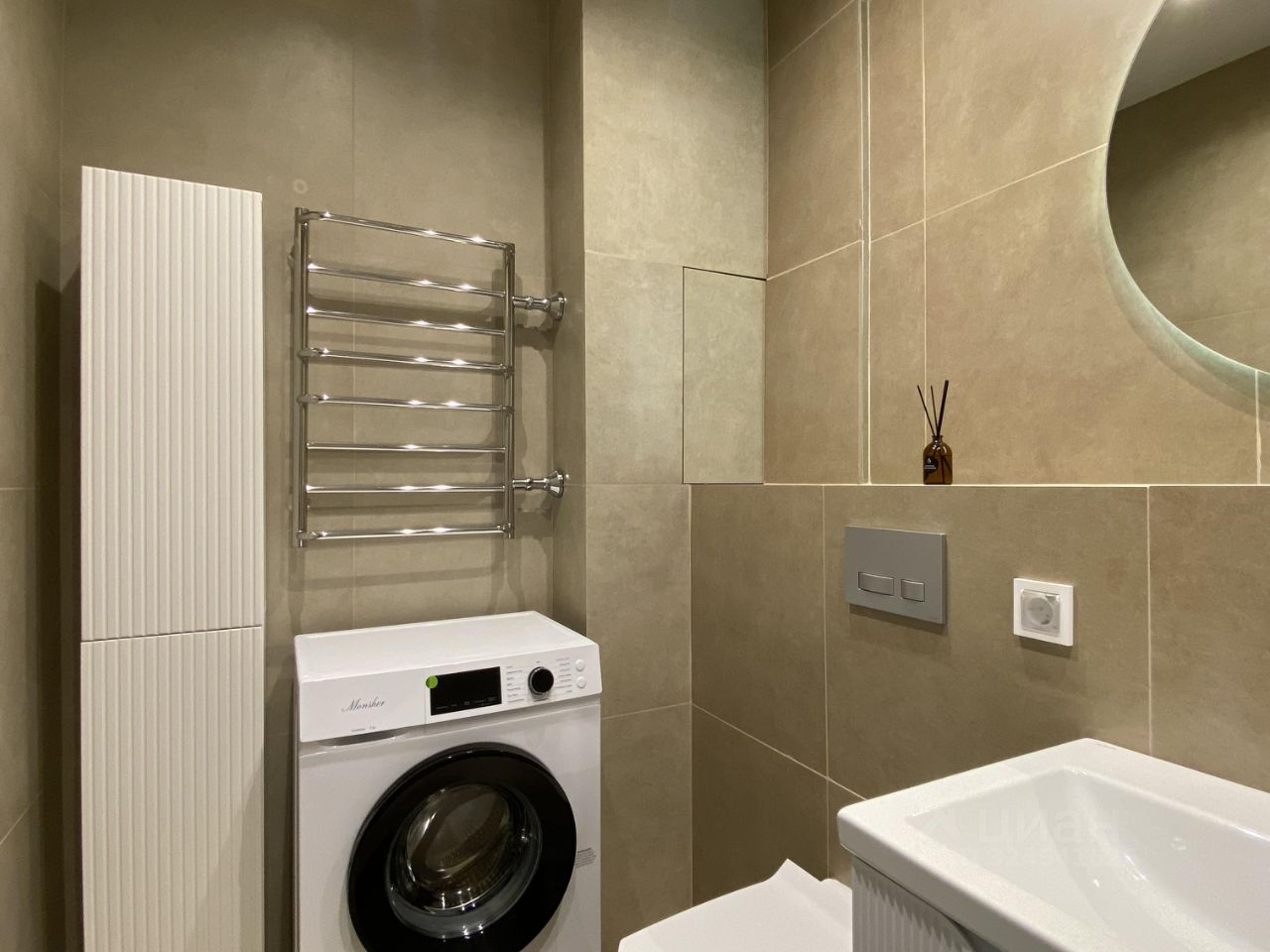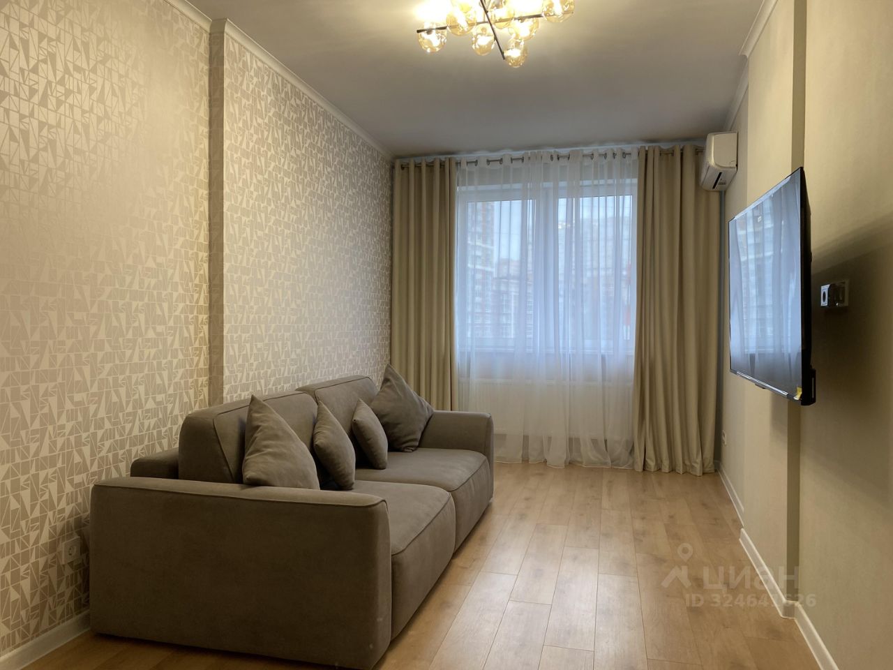 Квартира оснащена необходимой бытовой техникой, все новое: посудомойка, плита и духовка, вытяжка, микроволновка и холодильник на кухне, в ванной установлена стиральная машинка, кондиционер и телевизор - в большой комнате.