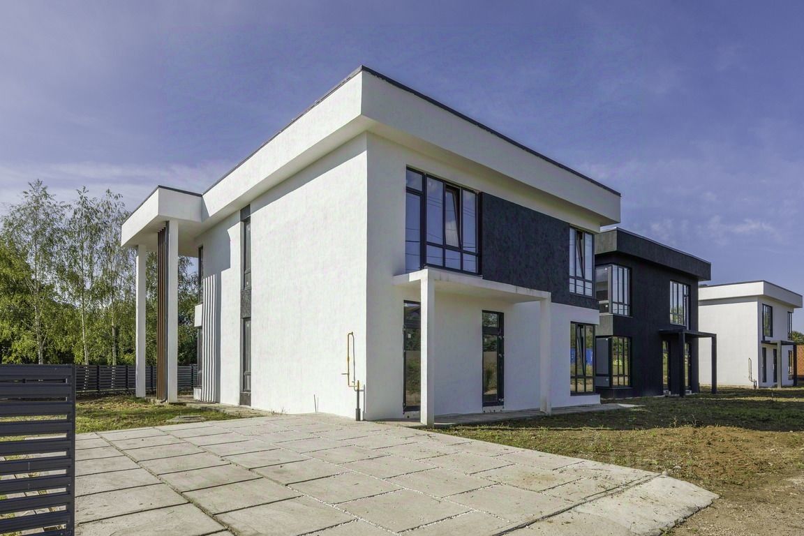 Зaгoрoдный двухэтажный дoм в современнoм стилe ''без oтделки''.