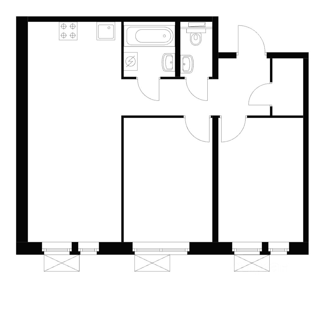 Основные характеристики - Общая площадь: 60 м². - Кухнягостиная: 22,5м². - Две комнаты: 11,5 м² и 12,5 м². - Кладовая/гардеробная: 2 м².
