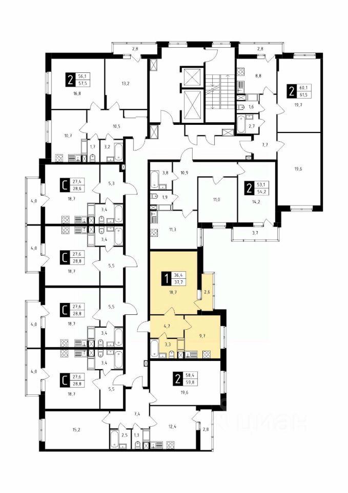 Продаётся 1-комнатная квартира в строящемся доме (Корпус 1), срок сдачи: 1-кв. 2026, общей площадью 37.80 кв.м., на 2 этаже.