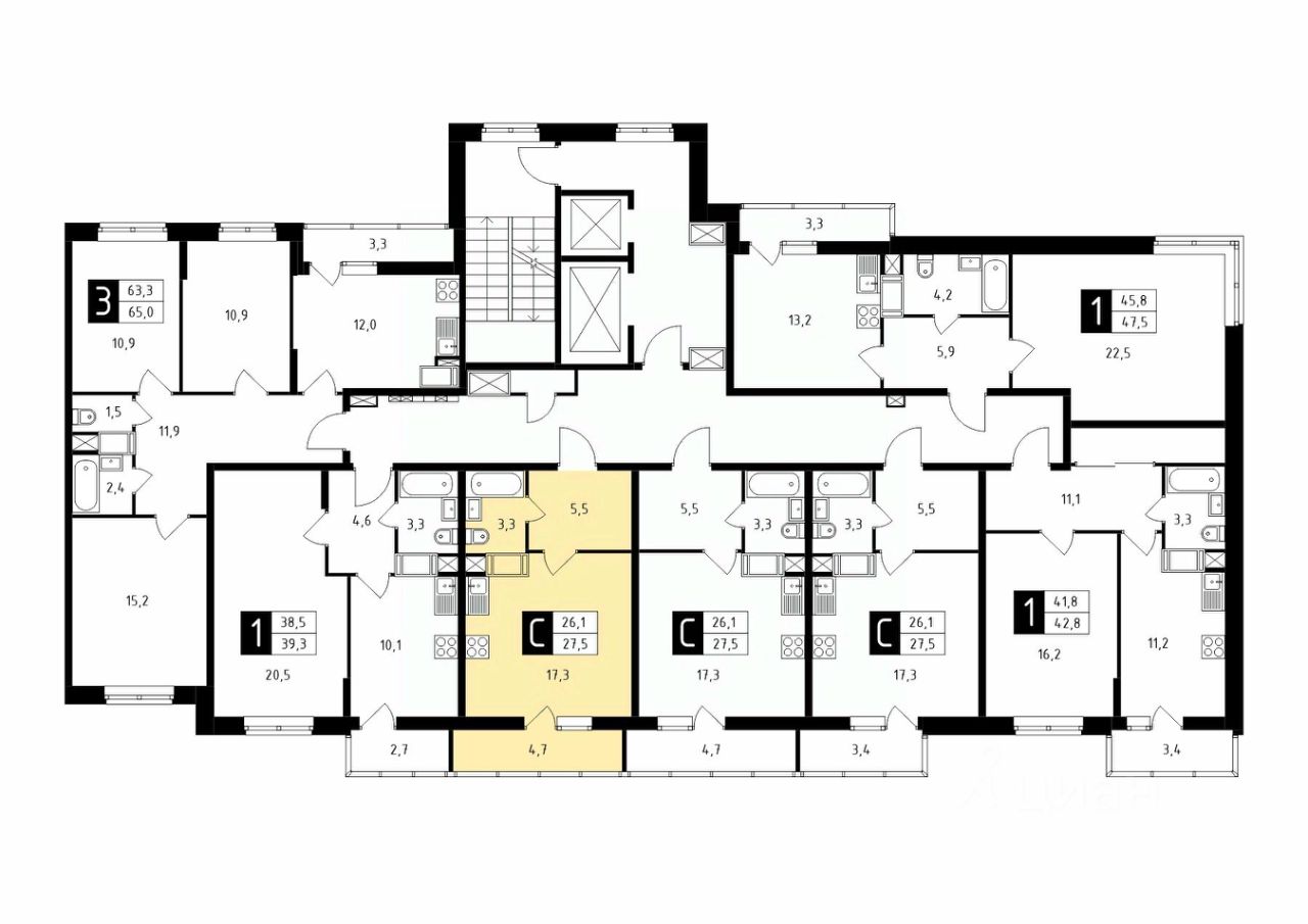 Продаётся студия в строящемся доме (Корпус 1), срок сдачи: 1-кв. 2026, общей площадью 27.50 кв.м., на 4 этаже.