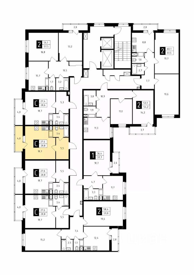 Продаётся студия в строящемся доме (Корпус 1), срок сдачи: 1-кв. 2026, общей площадью 28.80 кв.м., на 5 этаже.