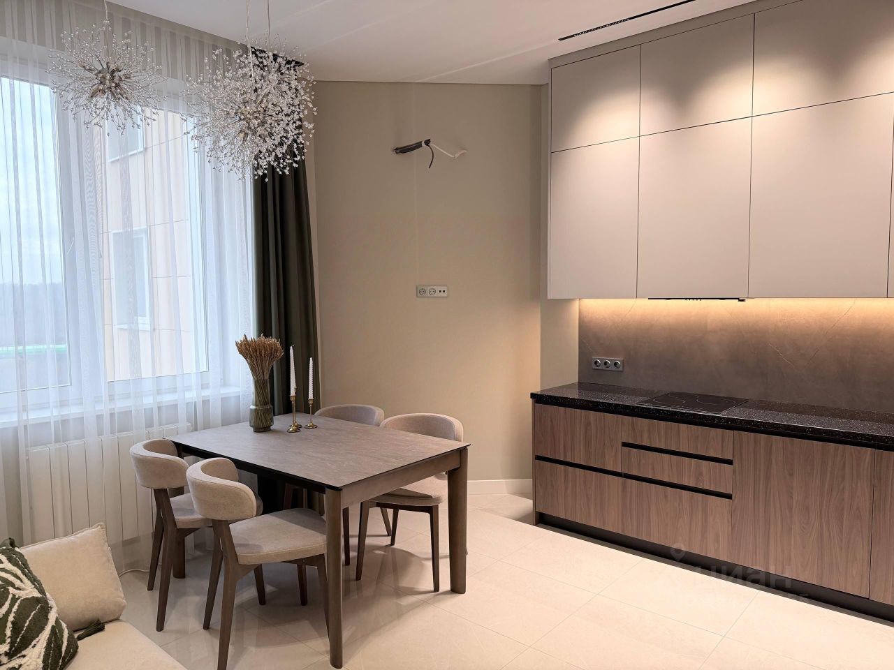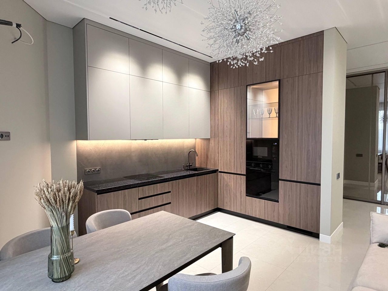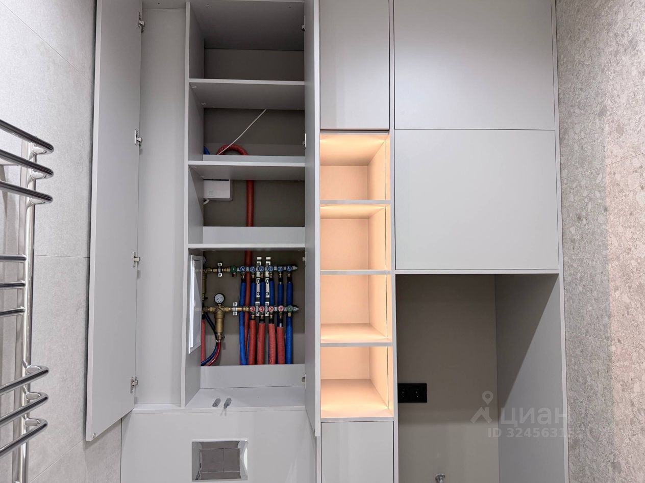 Выполнен ремонт высокого качества с использованием дорогостоящих материалов: пол - керамо-гранит, немецкий ламинат, теневые натяжные потолки с магнитной трековой системой и дизайнерскими светильниками, стены - под покраску, стальная входная дверь, стильная кухня Монтанья, столешница из искусственного камня с интегрированной раковиной, встроенный холодильник с системой NoFrost, варочная поверхность, вытяжка, духовой шкаф, СВЧ, посудомойка фирмы MAUNFELD, на кухне сделан вывод под кондиционер, вся электрика donel r98, в ванной установлен водонагреватель под проточную воду, дорогая сантехника, в прихожей и двух спальнях сделаны встроенные гардеробные системы Aristo под сетчатую систему хранения.