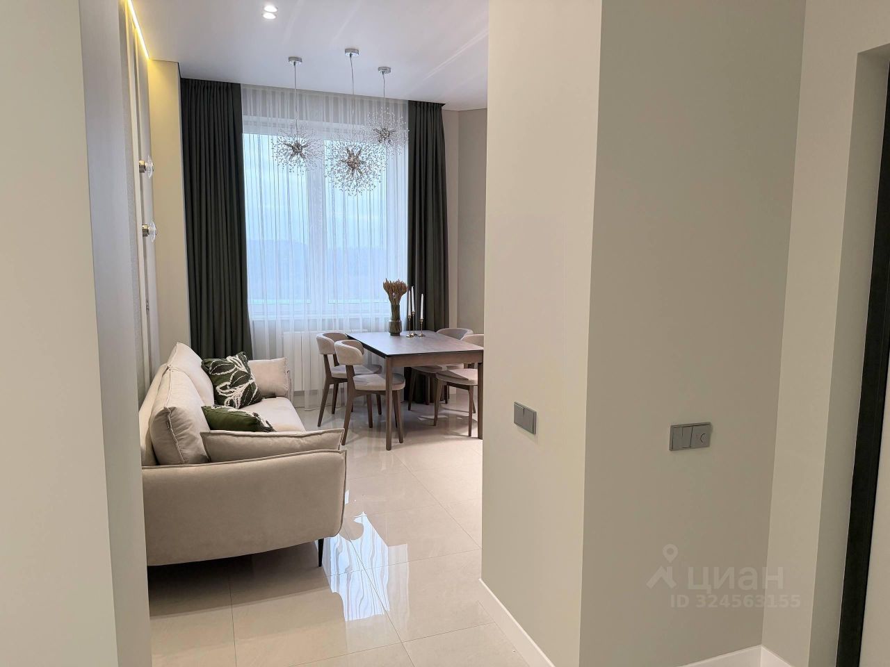 Продается просторная 2-хкомнатная квартира (две спальни 16 кв.м и 18 кв.м и кухня-гостиная 17 кв.м) с новым ремонтом и новой мебелью, НИКТО НЕ ЖИЛ! Общая площадь 68,7 кв.м. Планировка - распашная, окна выходят во двор. Дом расположен вдали от дорог. Высокие потолки 3,10 м, две изолированные комнаты, кухня-гостиная, большой холл-прихожая, с\у с постирочной, ванная.