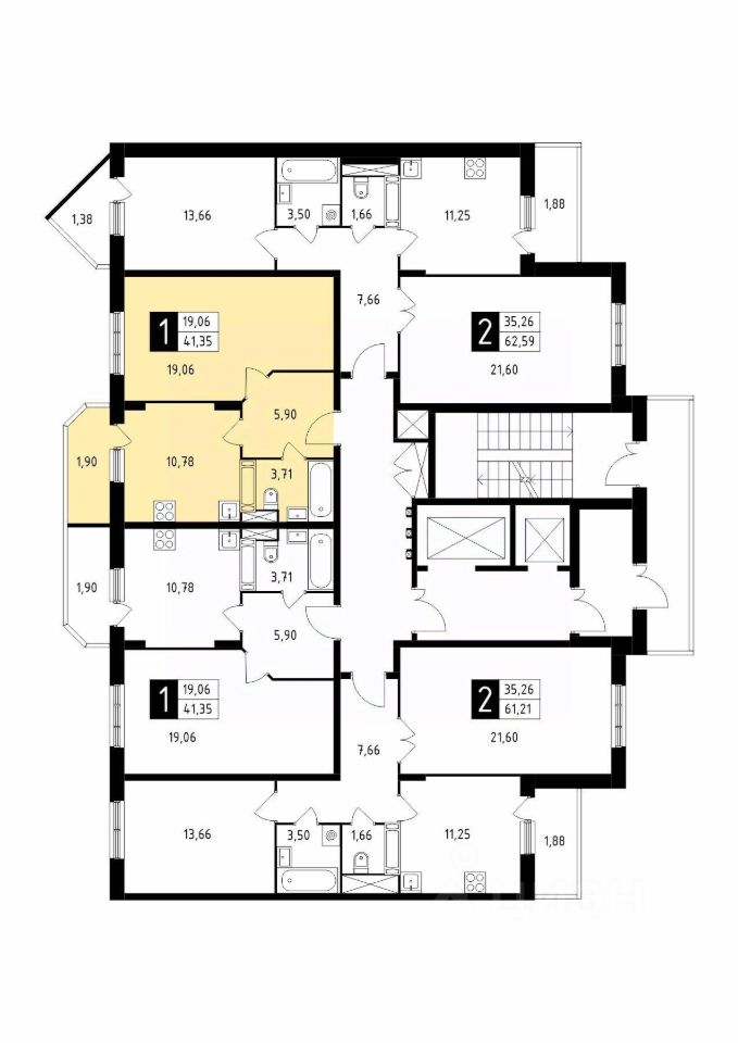 Продаётся 1-комнатная квартира в сданном доме (Корпус 41), срок сдачи: 4-кв. 2025, общей площадью 41.35 кв.м., на 14 этаже.
