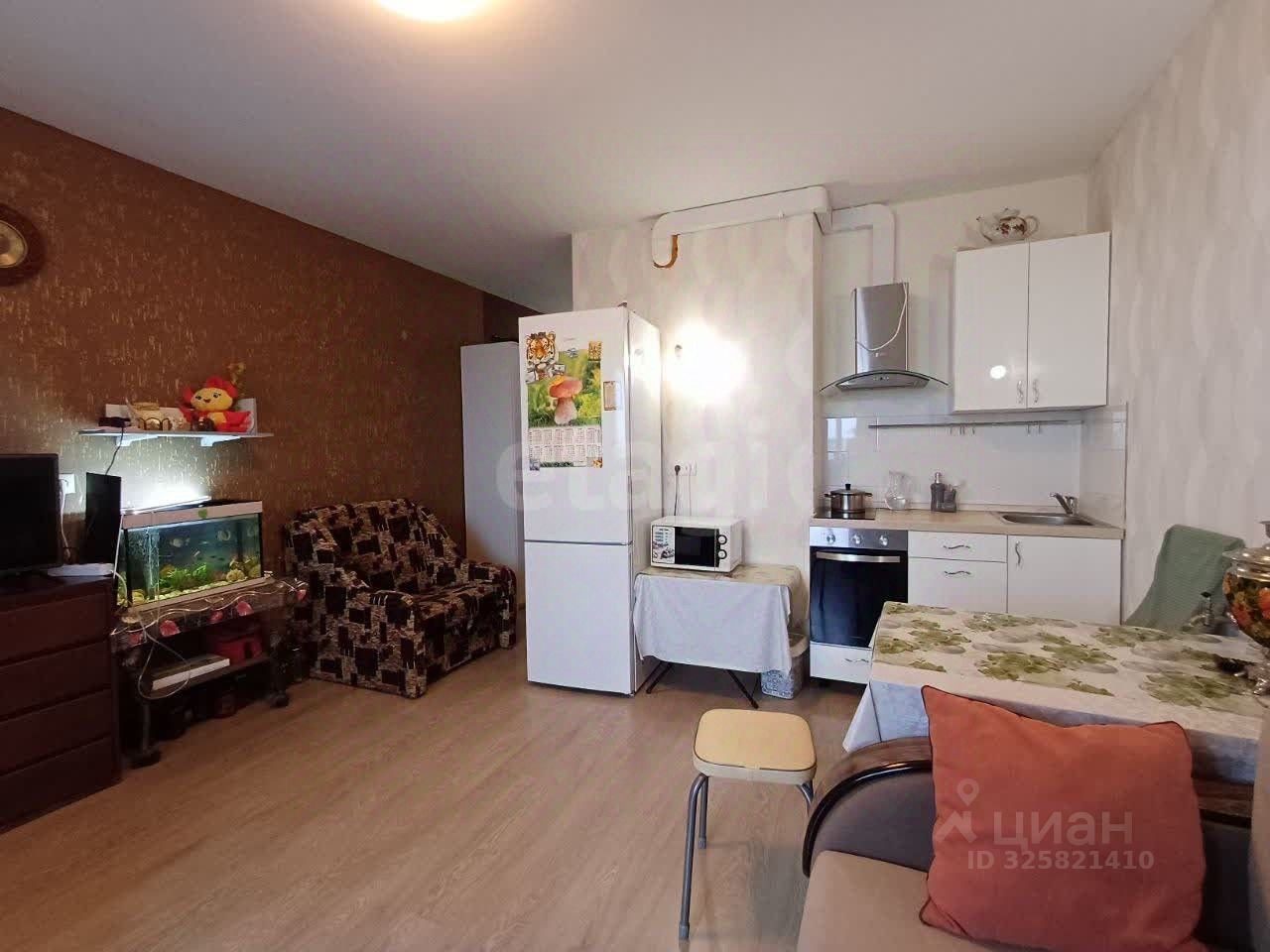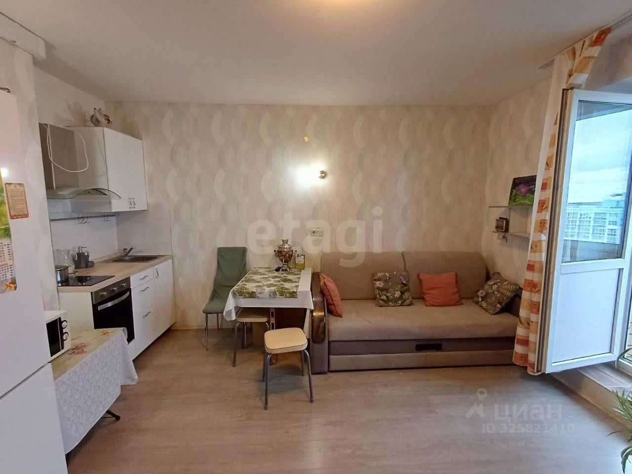 Просторная студия на 14 этаже современного 17-этажного дома 2016 года постройки в микрорайоне Купелинка предлагает выгодное сочетание уюта и транспортной доступности.