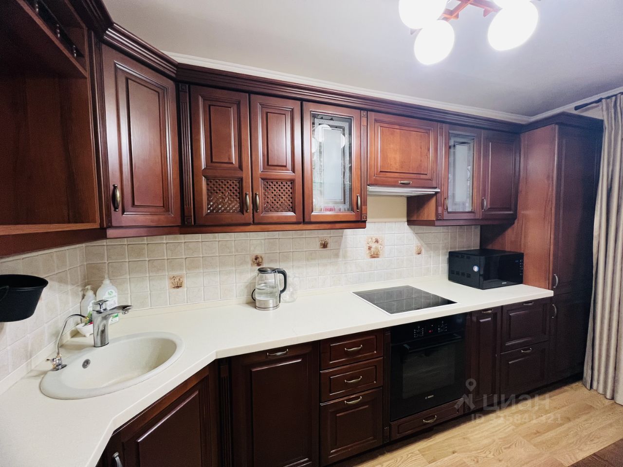 Сделан хороший ремонт (вложений не требует), состояние на 8/10: - окна двухкамерный стеклопакет Rehau с шумопоглощением (при закрытых окнах не слышно ни дорогу, ни двор), - усиленная входная дверь Стал с шумоизоляцией, - на окнах установлены кованные решётки ручной работы, с балкона решётка открывается (балкон остеклен, обшит), установлен внутренний замок, - ванная комната совмещенная, плитка итальянская, сантехника Roca, - натяжные потолки немецкие, - в коридоре установлен шкаф-купе с зеркальными дверями, фирма Кардинал, - на кухне мебель сделана под заказ, фасад итальянский, доводчики немецкие, столешница искусственный камень, - бытовая техника: стиральная машина, посудомойка, варочная плита, духовой шкаф - Bosch, немецкая сборка (ценители качества оценят), встроенный холодильник Electrolux, микроволновка Samsung, вытяжка Cata.