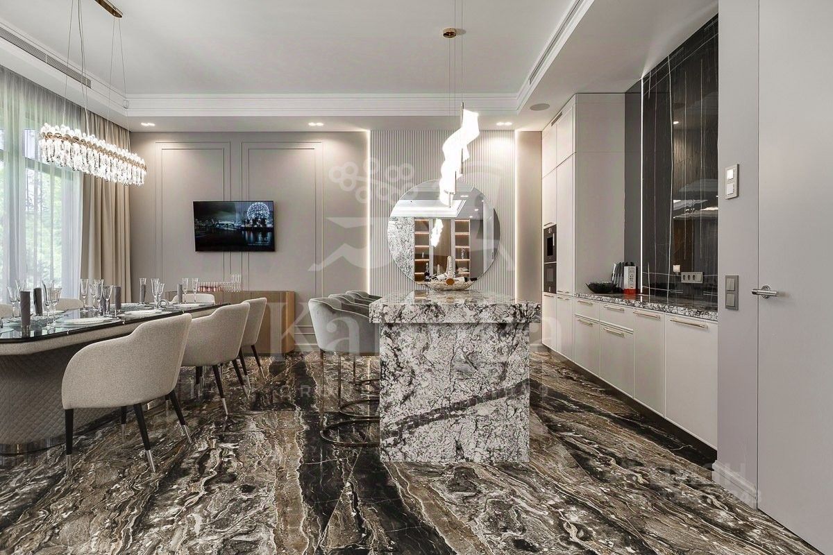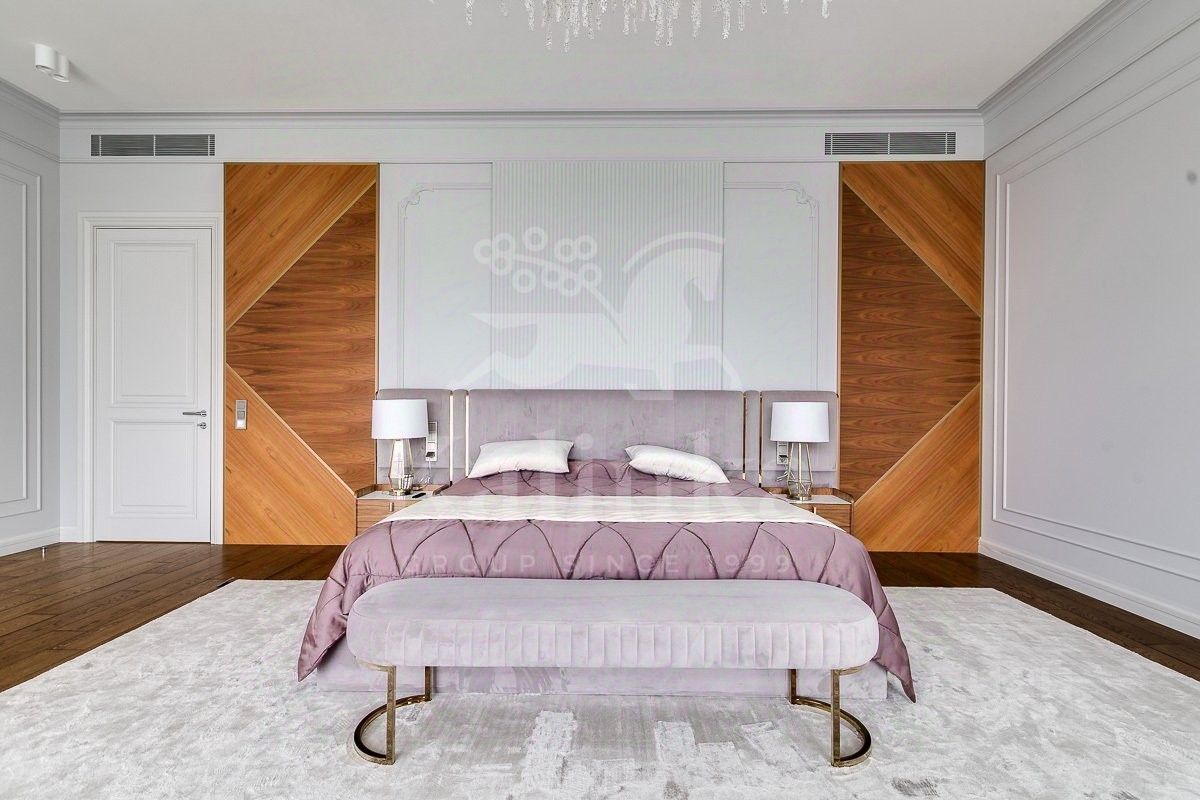 Новый современный дом 1015 кв. м ''под ключ'' с мебелью, расположенный в тихой части поселка рядом с центральным озером и прогулочной зоной. Планировкой коттеджа предусмотрены 6 спален со своими ванными комнатами и гардеробными, гостиную, столовую с выходом на крытую террасу, СПА-зону с бассейном, тренажерный зал, кабинет, чистовую и рабочую кухни.