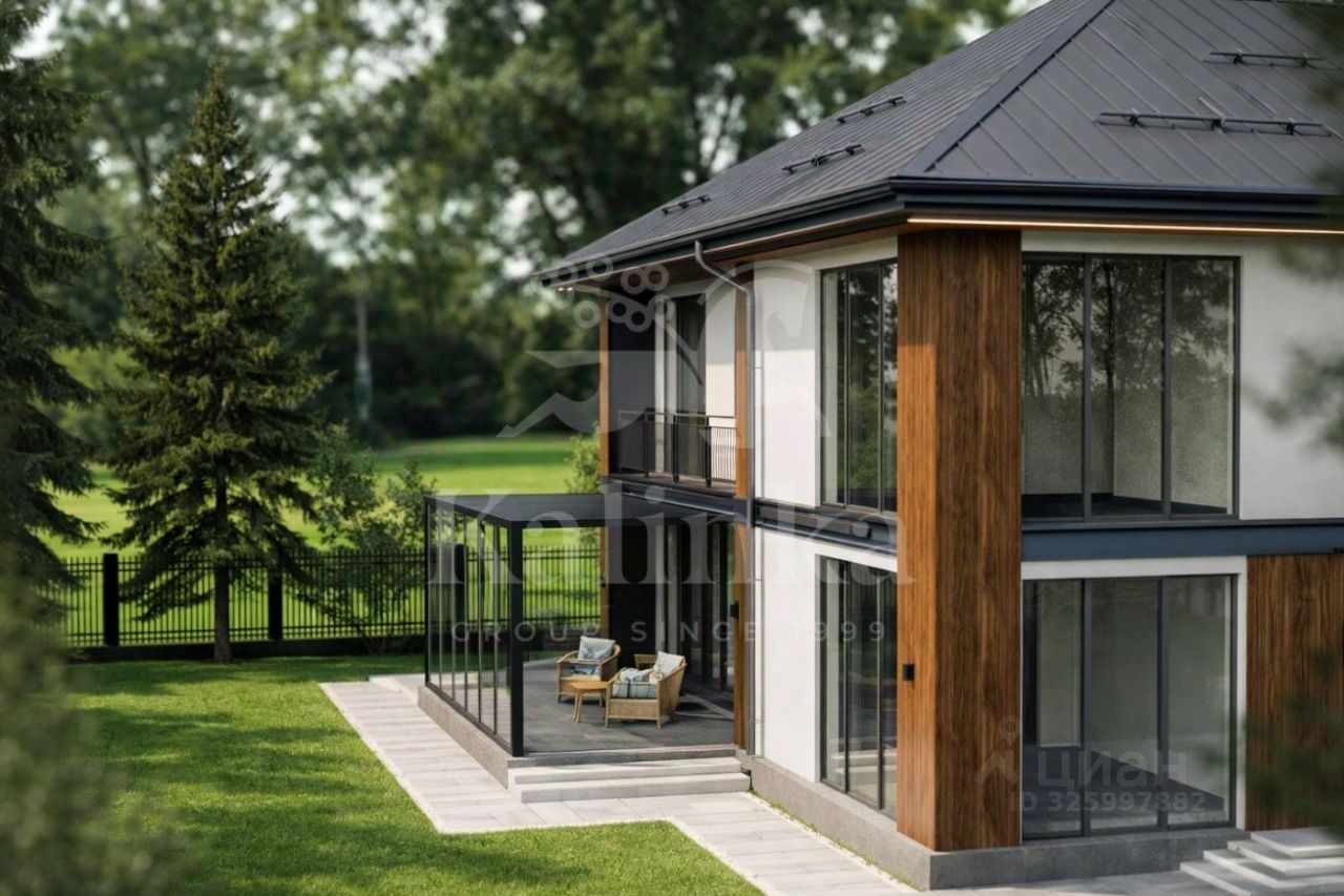 Предлагается новый дом 380 кв.м. на участке 9 соток с предчистовой отделкой в тихой части посёлка Жуковка-3. Фасад дома выполнен из композитных японских панелей, выполнено фасадное освещение на европейском оборудовании премиального уровня. Установлены алюминиевые панорамные окна Allutech, обеспечивающие максимум света, тепла и шумоизоляции.