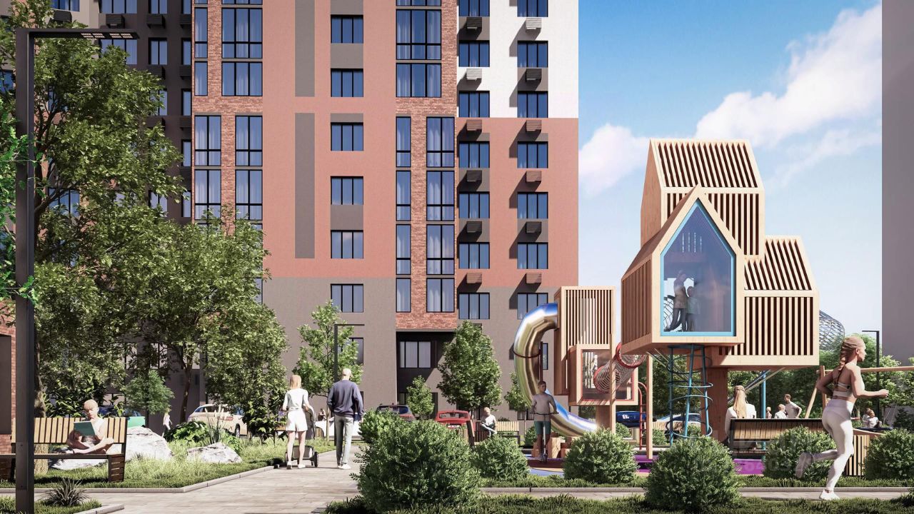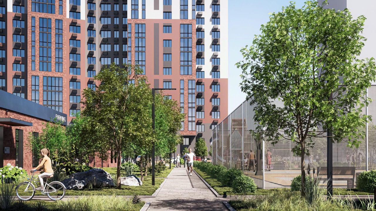 Благоустройство - большой приватный двор-парк, - всесезонная растительность: взрослые деревья, кустарники, травы, цветочные клумбы, - декоративные камни и многоуровневое освещение для уютной атмосферы, - мощеные тропинки с деревянными скамейками для отдыха, - площадки для малышей с безопасным покрытием, - яркие игровые комплексы для подростков, - спортивный корт для футбола и баскетбола, - многофункциональная воркаут-зона, - уютные места для чтения или работы в тишине.