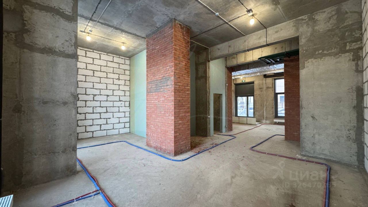 Технические параметры: * Расположение: Первая линия, панорамные витрины по фасаду и отдельный вход с улицы. Окна выходят на обе стороны дома (сквозное). * Планировка: Свободная, можно сделать под себя. * Высота потолков: до 4,7 м, что позволяет реализовать двухуровневые интерьерные решения. * Инженерия: Центральное отопление и водоснабжение, возможность увеличения электрической мощности от стандартного.