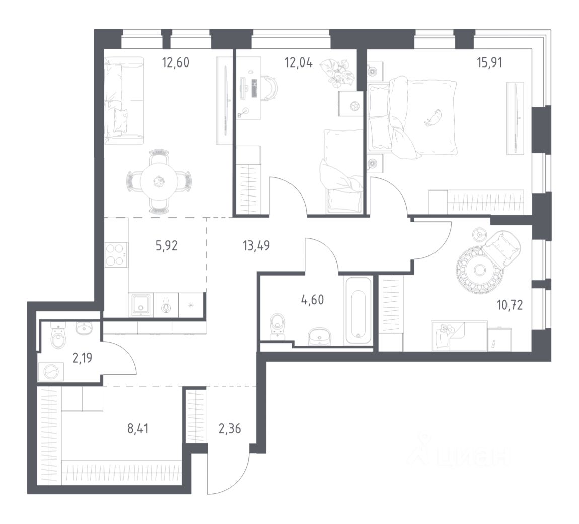 Строим кварталы для жизни с заботой о будущем. Предлагается 3-комнатная квартира комфорт-класса площадью 88,24 кв.м в корпусе 7.2 на 10-м этаже, в жилом комплексе ''Богдановский Лес''.