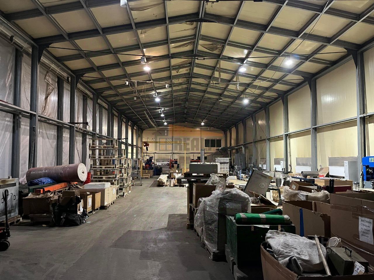 Общая площадь 1500 кв.м. Состоит из двух соседних помещений по 750 кв.м. Отапливаемое.